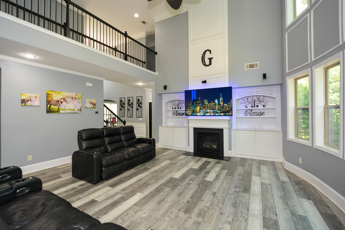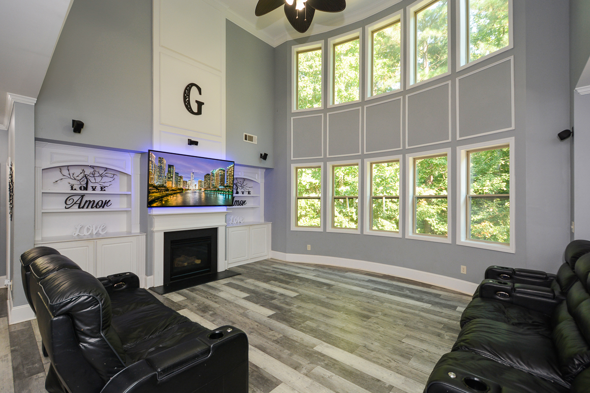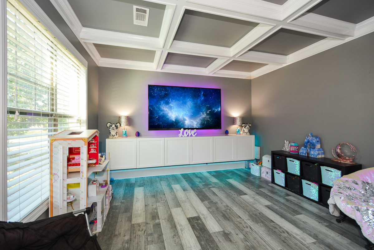 It’s football season, and this gathering area is ready to bring the stadium vibes home! Picture a large sectional, an oversized coffee table loaded with game day snacks, & SURROUND SOUND SPEAKERS to make every touchdown feel like you're there in person.
